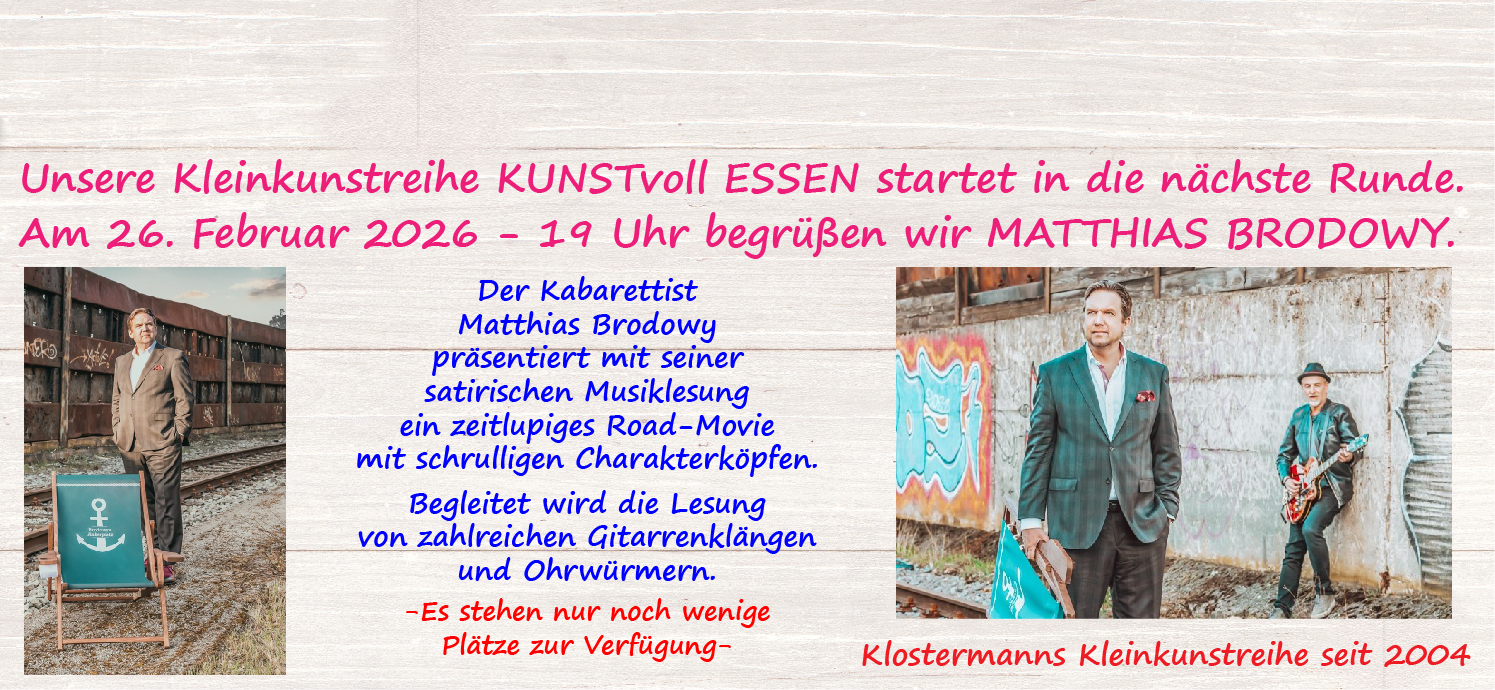 Moderne regionale Küche in Verbindung mit feinsinnigem niveauvollem Humor. Das beschreibt die seit 2004 bei Klostermanns stattfindende kulinarische Kleinkunstreihe. Entspannen und Erholen…